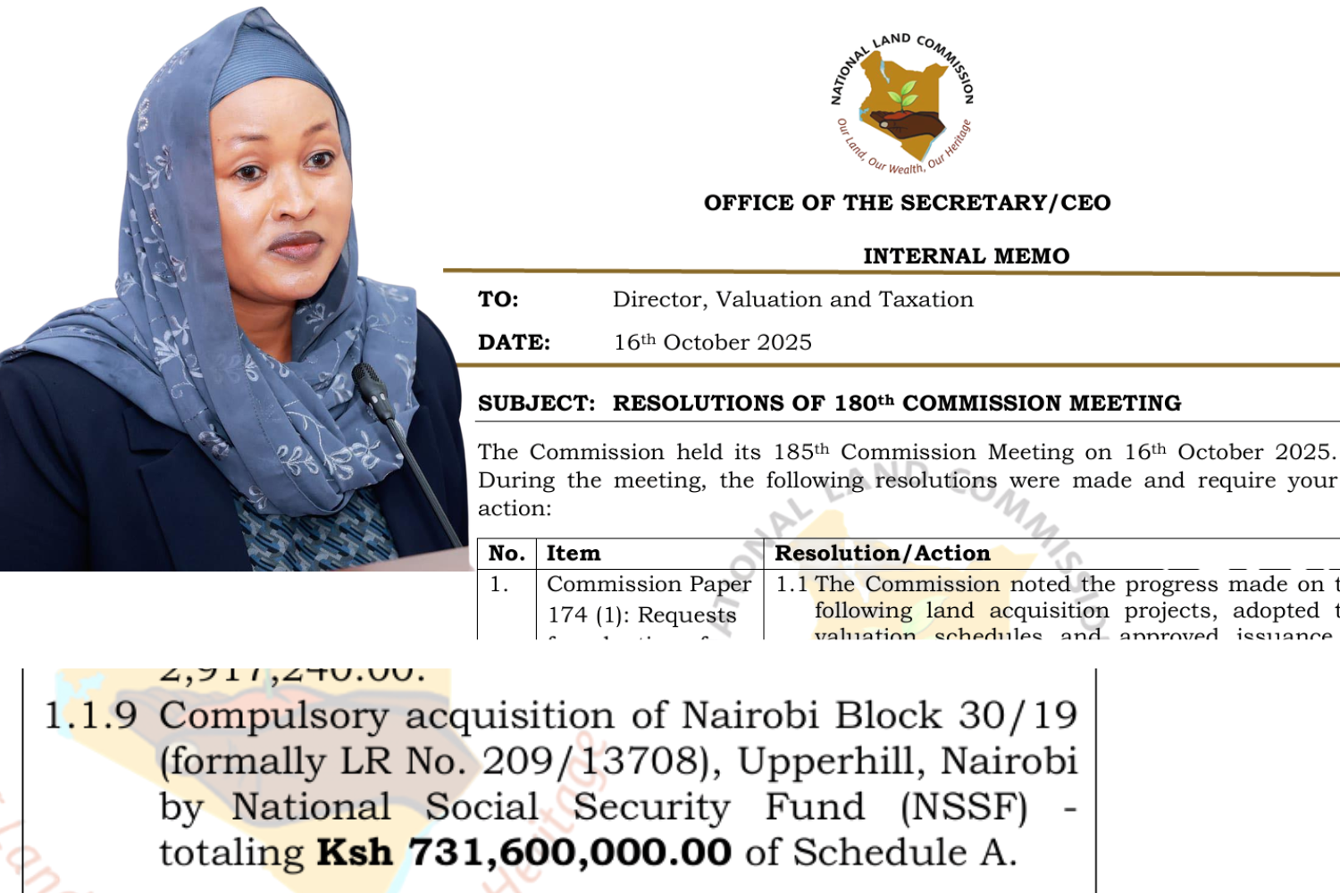 Fresh details have emerged that the National Land Commission approved KSh731.6 million-compensation to Grassy Limited for land acquired by the National Social Security Fund, despite the 0.7-acre parcel having a history which shows it was public land.